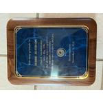 Airflyte Premium Walnut Piano Finish Plaque with Gold Florentine Border Textured Blue LaserFX Plate