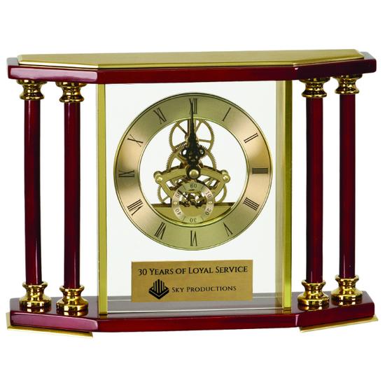 7 1/4" Executive 4-Pillar Gold & Rosewood Piano Finish Clock