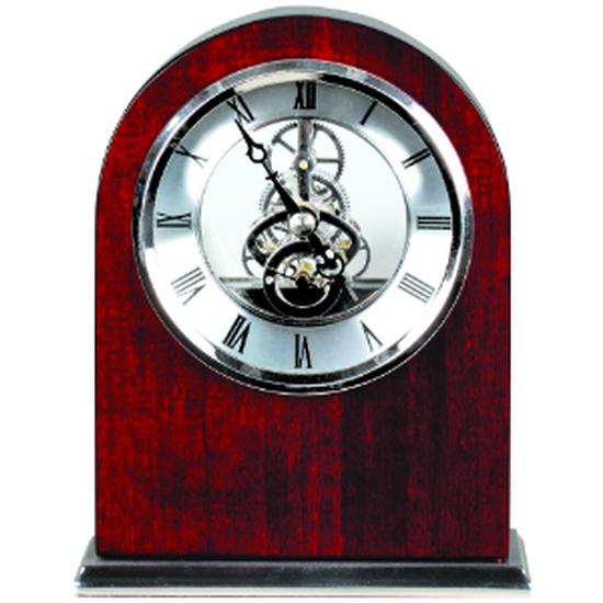 6 1/2'' Rosewood/Silver Piano Finish Arch Clock with Base and Trim jT503