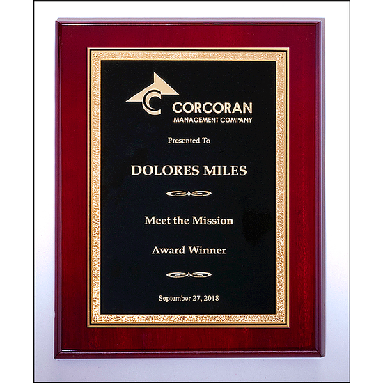 Black Center with Gold    Florentine Border on Rosewood    High Lustr Plaque