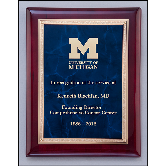 This beautiful Airflyte Premium Rosewood Piano Finish Plaque features a sapphire marble plate with a gold Florentine Border. This elegant plaque is one that definately shows the ultimate recognition and appreciation of excellence.