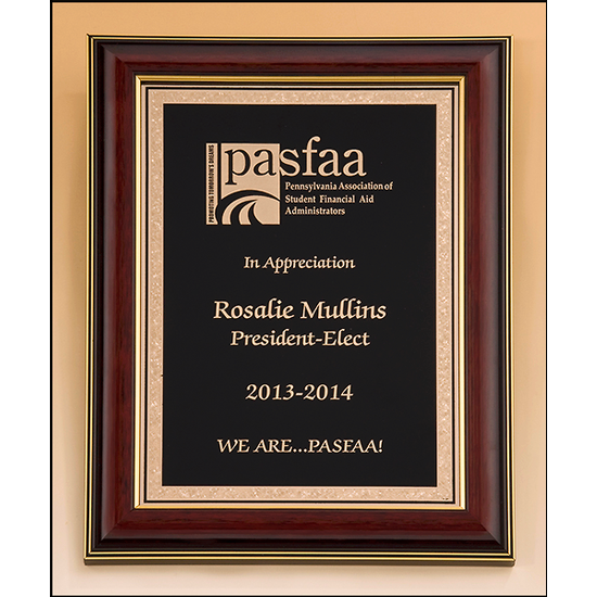 High Gloss Rosewood Stained Plaque with Gold Florentine Border Plate II