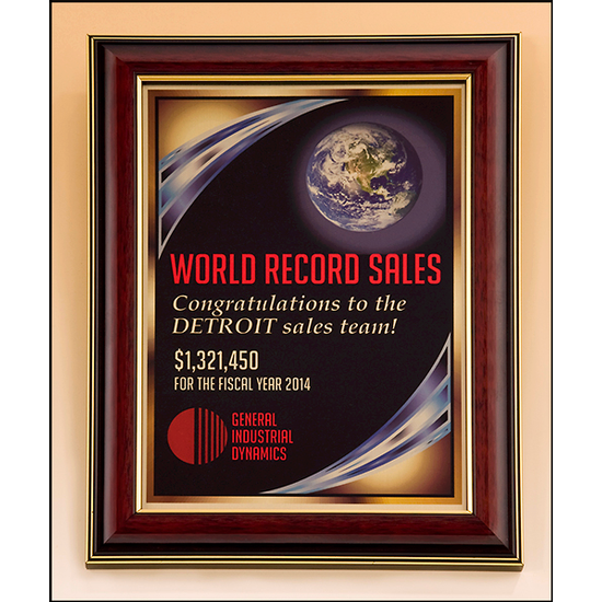 High Gloss Mahogany Stained Frame with    Gold Sublimatable Plate      WEIGHT: 1.5 LB