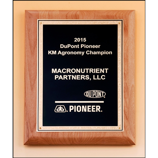This stunning Natural Alder Wood plaque is embellished with a textured black LaserFX plate with a gold Florentine Border. Personalized for your event, this plaque makes an elegant award, perfect for the recognition of excellence.