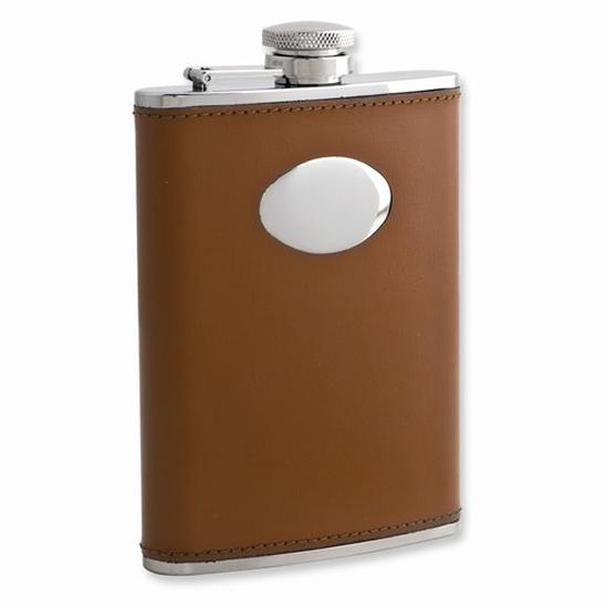 Brown Leather 6oz Stainless Steel Flask With Funnel oGM3809