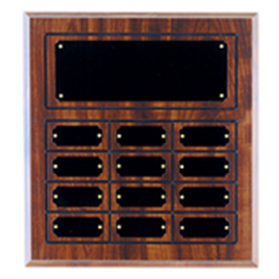 11 3/4'' x 12 3/4'' Cherry Finish Completed Perpetual Plaque with 12 Plates