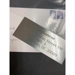 .025" Satin Silver Aluminum        Thickness:        .025"        Color:    Satin Silver        Sand Carved Color:    Silver        Material:    Aluminum        Gender:    Neutral        Number of Batteries Required:    n/a        Protective Coating:    Plastic        Color Engraves To:    Silver            Misc. Notes    Full sheets FOB Sioux Falls only. $25.00 crate charge.    Diamond Drag Engravable:    Yes        Burnishable:    No        Rotary Engravable:    Yes        Laserable:    No        Sublimatable:    No        Sand Carvable:    Yes        Cuts with Scissors:    No        Cuts with Knife:    No        Cuts with Shear:    Yes        Cuts with Saw:    No        Cuts with Laser:    No        Front Engravable:    Yes        Reverse Engravable:    No        Indoor Use Only:    Yes        Single Sided:    Yes        Has Easel Back:    No        Includes Sawtooth For Hanging:    No        Back is KeyHoled:    No        Self Standing:    No        Includes Pins:    No        Includes Batteries:    No
