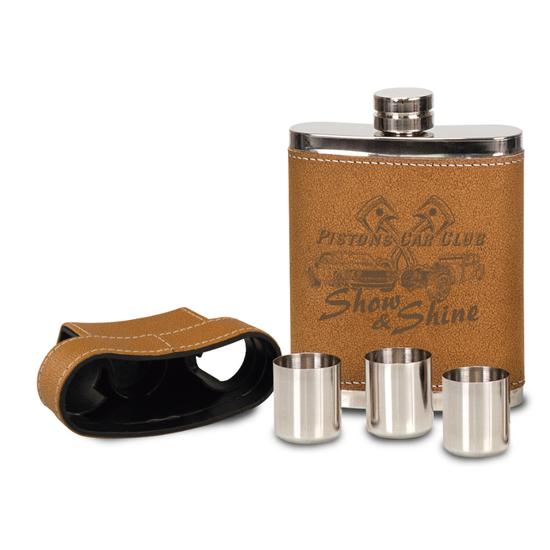 7 oz. Leather Flask with Lid & 3 Shot Glasses