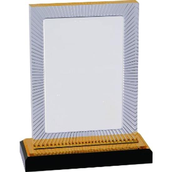 Short Description:    8 3/4" Gold Carved Rectangle Impress Acrylic        Length:    6"        Height:    8 3/4"        Width:    2 1/2"        Thickness:    3/4"        Overall Size:    6"(L) x 8 3/4"(H) x 2 1/2"(W)        Maximum Personalization Area:    3 5/8"(L) x 6 5/8"(H)        Base Dimensions:    6"(L) x 3/4"(H) x 2 1/2"(W)        Color:    Clear/Silver/Black        Lasered Color:    Frosted        Material:    Acrylic        Gender:    Neutral        Number of Batteries Required:    n/a        Protective Coating:    ShrinkWrap        Miscellaneous Dimensions:    Acrylic: 5"(L) x 3/4"(W) x 8"(H)        Color Engraves To:    Frosted            Misc. Notes    Reverse engrave on the back for best results.     The base is shipped unattached from base, then peel and stick together.     Item is shipped in a white, cardboard box, not to be used for presentation.     Diamond Dragable:    No        Burnishable:    No        Rotary Engrable:    Yes        Laserable:    Yes        Sublimatable:    No        Sand Carvable:    No        Front Engravable:    Yes        Reverse Engravable:    Yes        Indoor Use Only:    Yes        Self Adhesive:    Yes        Single Sided:    Yes        Self Standing:    Yes        Stands Vertical:    Yes        Has Easel Back:    No        Includes Sawtooth For Hanging:    No        Back is KeyHoled:    No        Self Standing:    No        Includes Base:    Yes        Includes Pins:    No        Includes Batteries:    No        Individually Packaged:    Yes