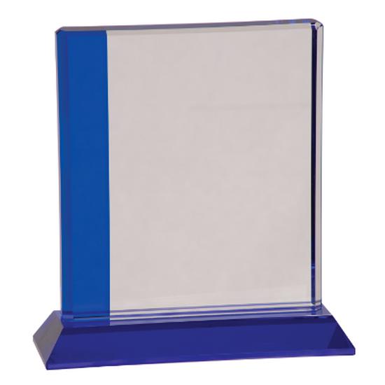 Length:    6 1/2"        Height:    7"        Width:    2 1/4"        Thickness:    3/4"        Overall Size:    6 1/2"(L) x 7"(H)        Base Dimensions:    6 1/2"(L) x 3/4"(H) x 2 3/8"(W)        Misc. Dimensions:    6 1/2"(L) x 3/4"(H)        Color:    Clear/Blue        Lasered Color:    Frosted        Sand Carved Color:    Frosted        Material:    Optic Crystal        Gender:    Neutral        Number of Batteries Required:    n/a        Misc. Dimensions:    Glass without base: 5 1/2" x 8" x 3/4"            Misc. Notes    - Each piece is handmade, so size may vary slightly.    - Sandcarving produces best results.        Diamond Dragable:    No        Burnishable:    No        Rotary Engrable:    No        Laserable:    Yes        Sublimatable:    No        Sand Carvable:    Yes        Can Color Fill:    Yes        Indoor Use Only:    Yes        Indoor or Outdoor Use:    No        Self Adhesive:    No        Double Sided:    Yes        Single Sided:    No        Self Standing:    Yes        Stands Horizontal:    No        Stands Vertical:    Yes        Hangs:    No        Hangs Horizontal:    No        Hangs Vertical:    No        Has Easel Back:    No        Includes Sawtooth For Hanging:    No        Back is KeyHoled:    No        Self Standing:    Yes        Includes Base:    Yes        Base Attached:    Yes        Includes Pins:    No        Includes Batteries:    No        Dishwasher Safe:    No        Microwave Safe:    No        Includes Box:    Yes        Individually Packaged:    Yes        Includes Backing:    No        Felt Back/Bottom:    No