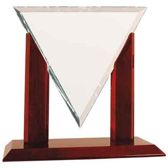 8 1/4" Diamond Triangle Clear Glass with Rosewood Piano Finish Base jRYD301C